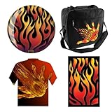 - The Orange Flame Polyester Bowling Ball, Bag and Shirt and Towel package is exclusively from us